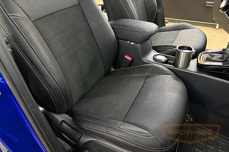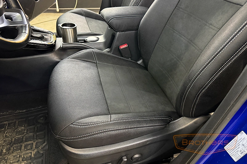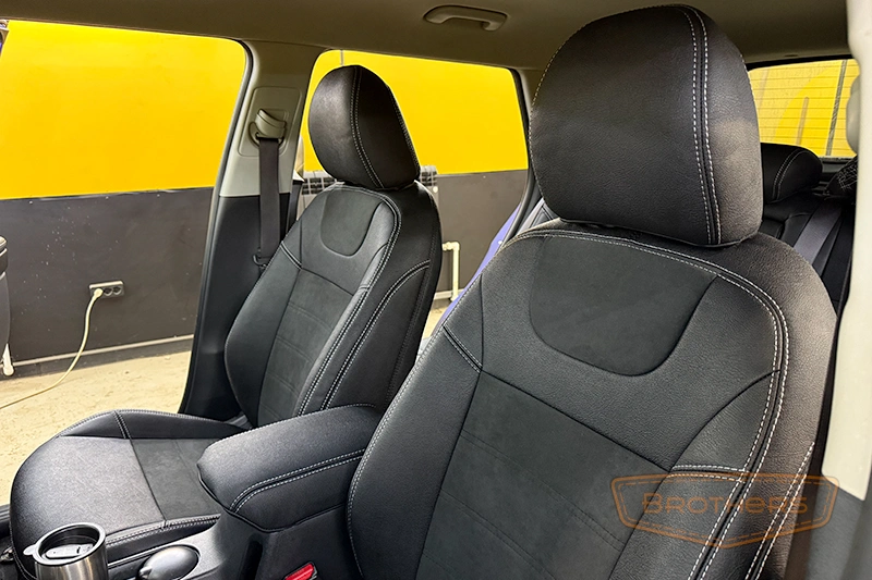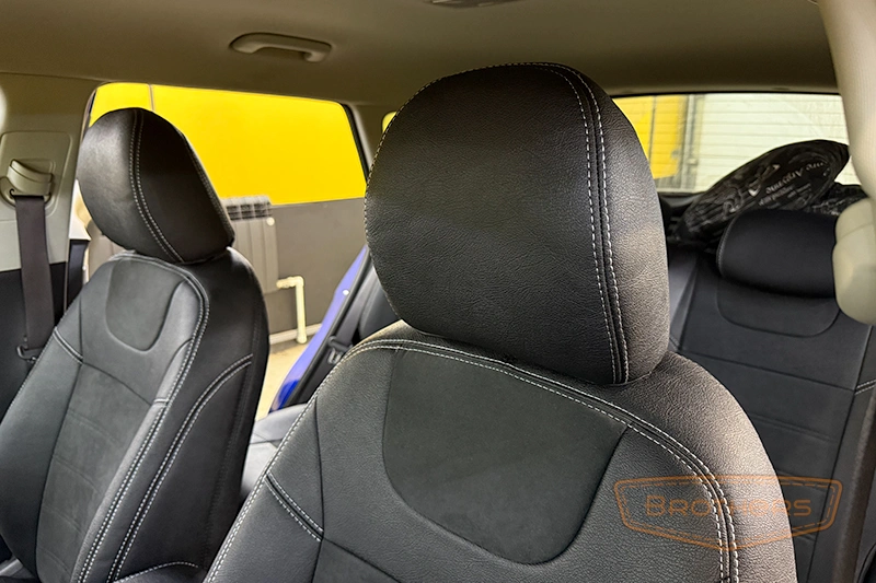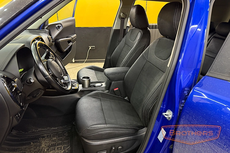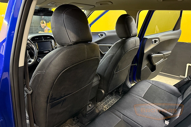 Чехлы на сиденья сшиты по лекалам кресел Kia Soul 3 и в точности повторяют их анатомию. Комплект выполнен из итальянской автомобильной экокожи "AURORA", вставки из перфорированной экокожи.