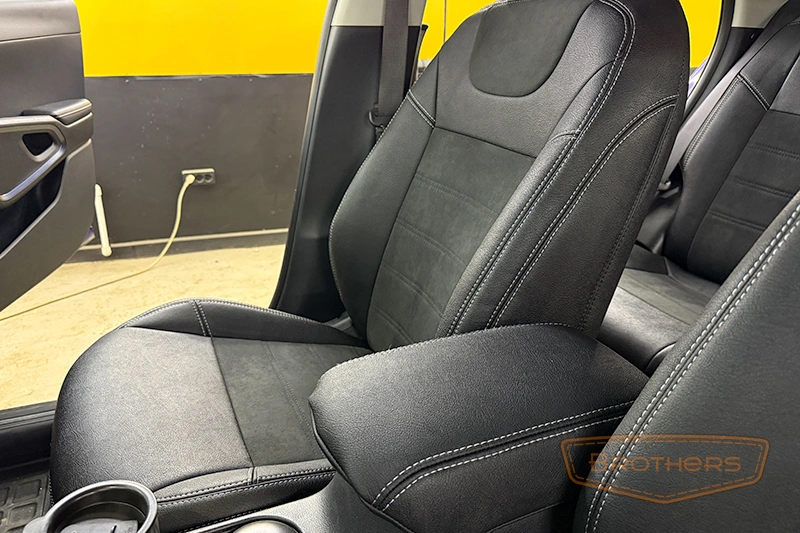 Не препятствуют срабатыванию AIRBAG, Высокая износоустойчивость, Фирменная двойная отстрочка в каждом комплекте чехлов, Четкая посадка на сидения.