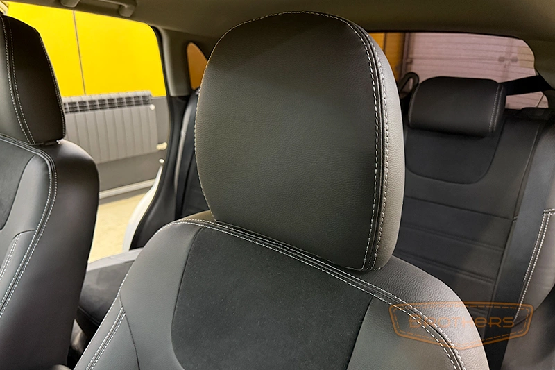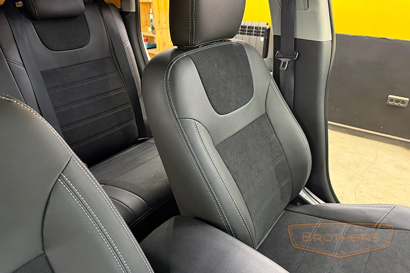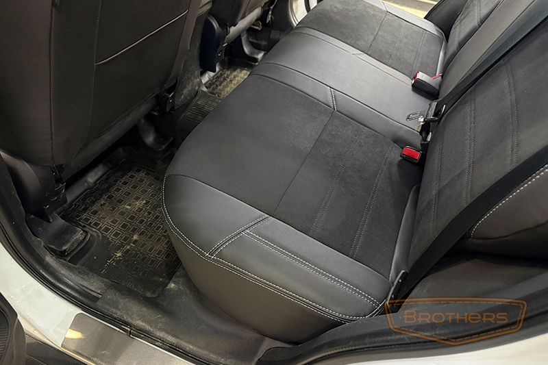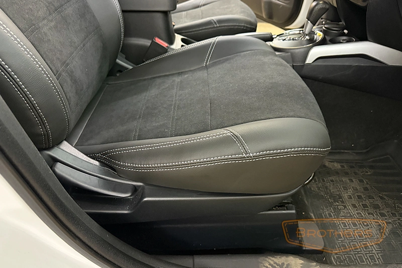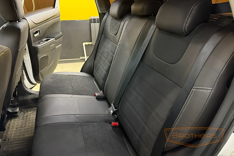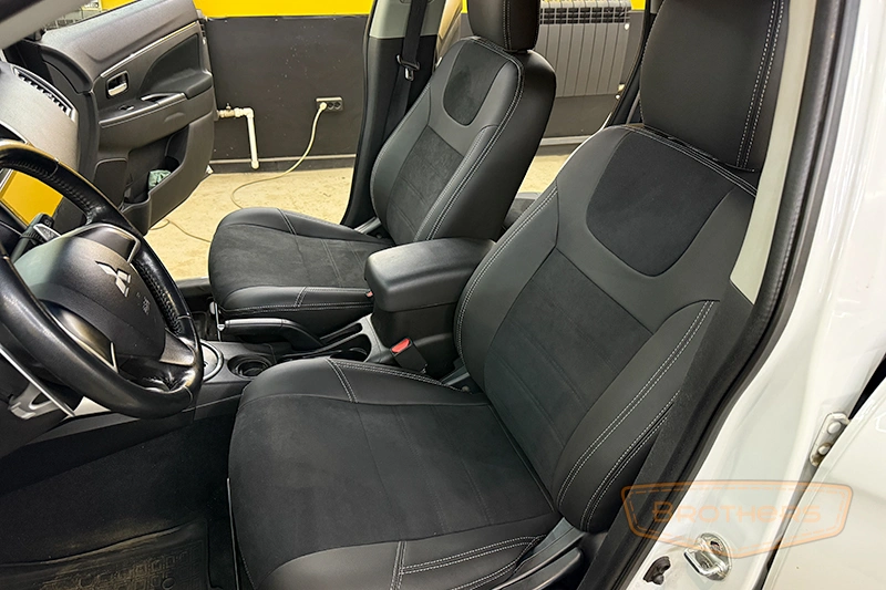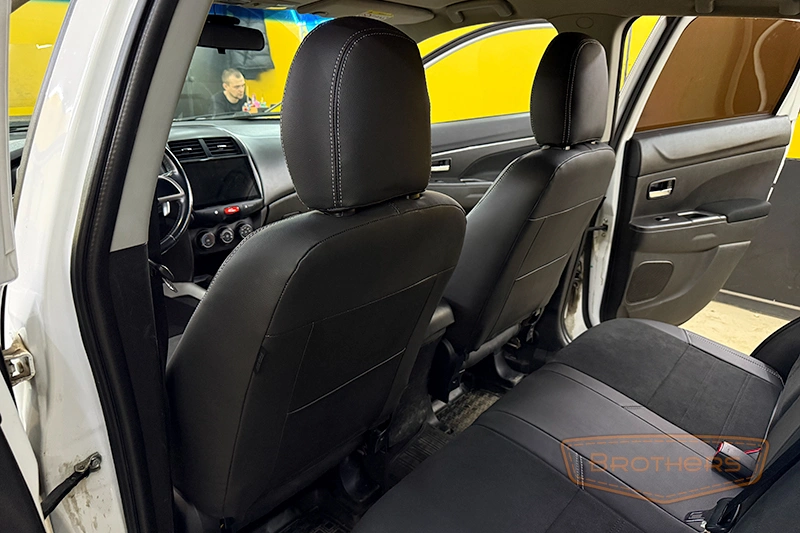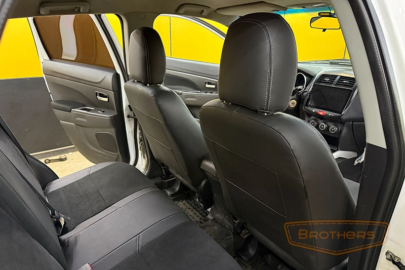 Чехлы на сиденья сшиты по лекалам кресел Mitsubishi ASX и в точности повторяют их анатомию. Комплект выполнен из российской экокожи "ULTRA", вставки из итальянской алькантары.