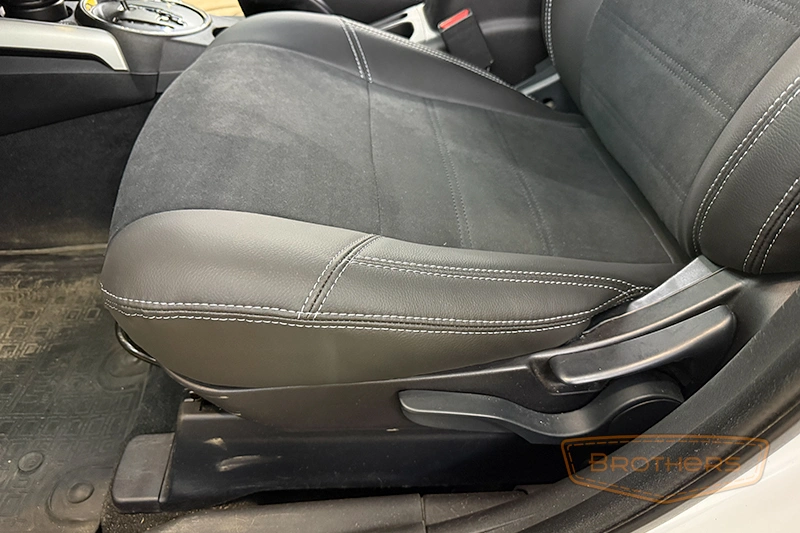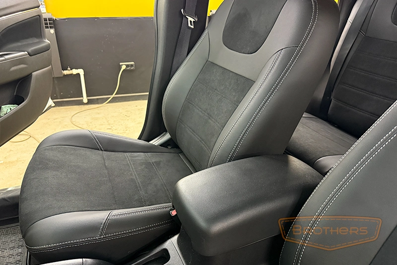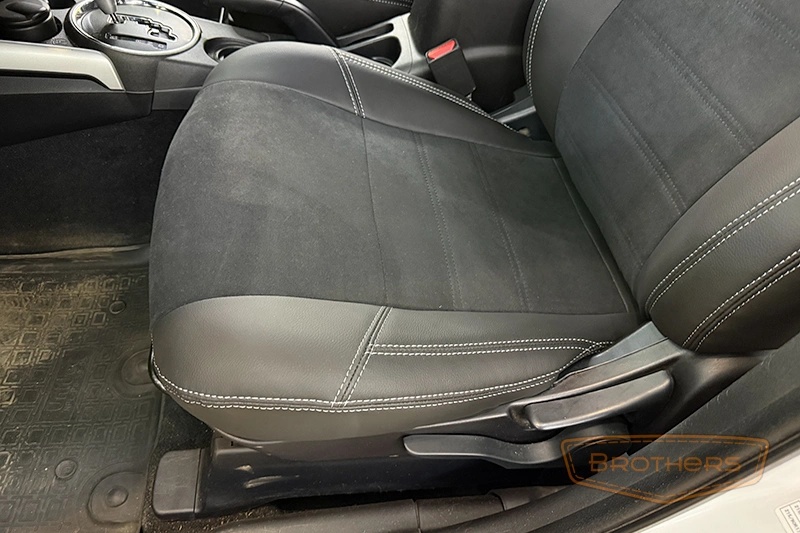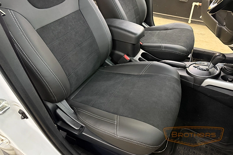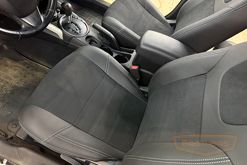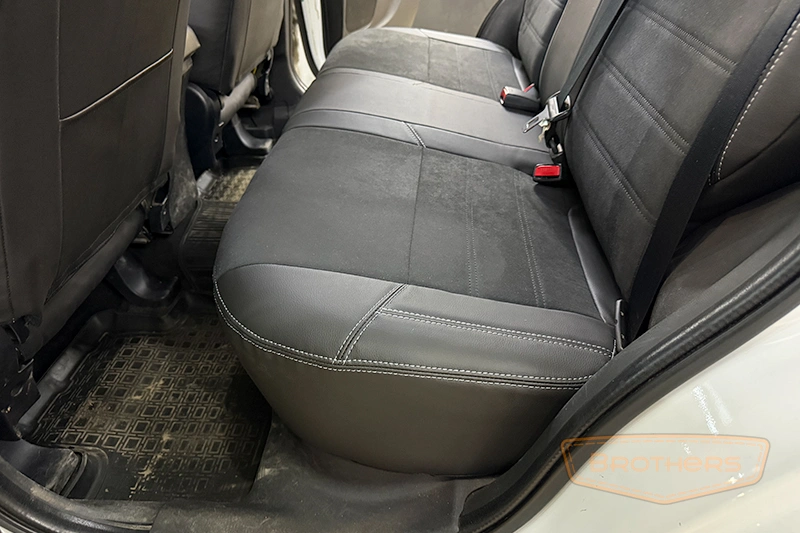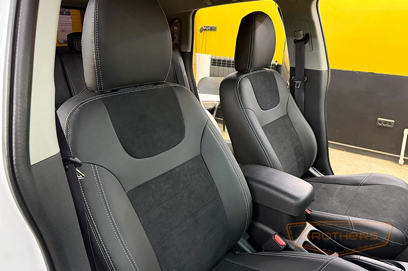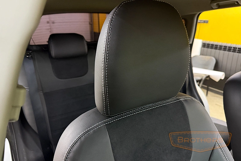Чехлы на сиденья сшиты по лекалам кресел Mitsubishi ASX и в точности повторяют их анатомию. Комплект выполнен из российской экокожи "ULTRA", вставки из итальянской алькантары.