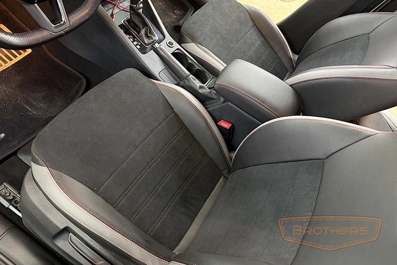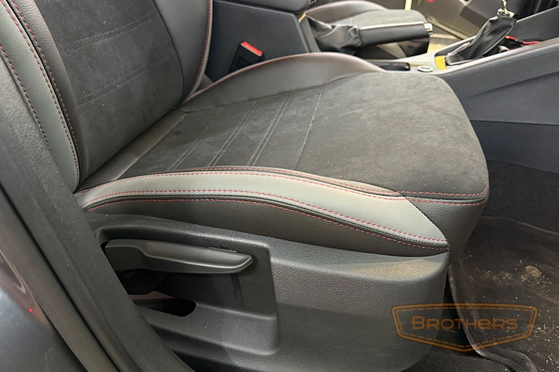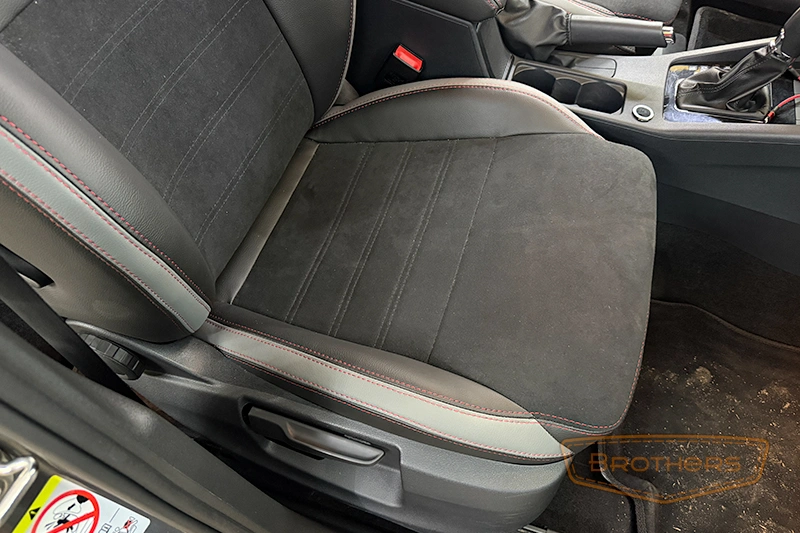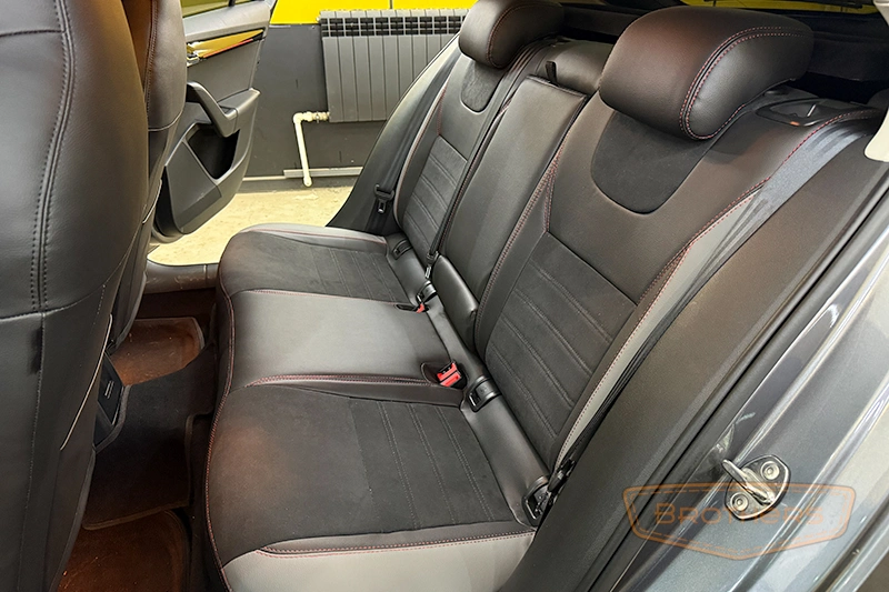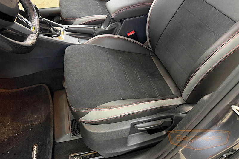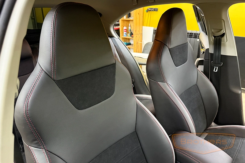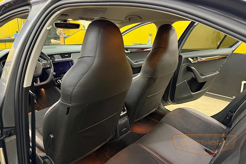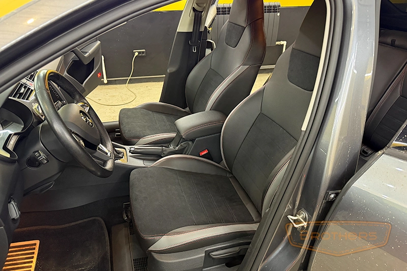 Чехлы на сиденья сшиты по лекалам кресел Skoda Octavia A7 (Hockey Edition) и в точности повторяют их анатомию. Комплект выполнен из российской экокожи "ULTRA", вставки из итальянской алькантары.