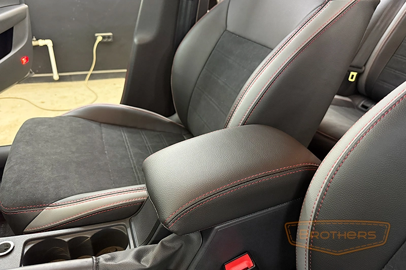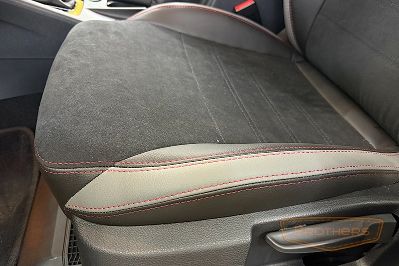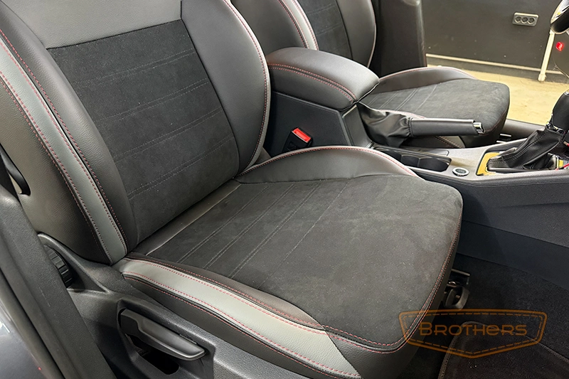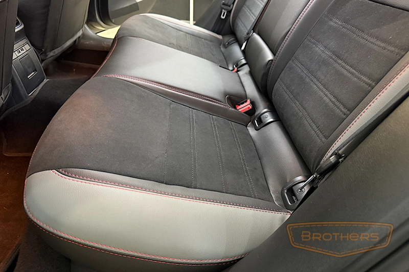 Чехлы на Skoda Octavia A7 (hockey edition), серии "Alcantara Full" - красная строчка, серые вставки