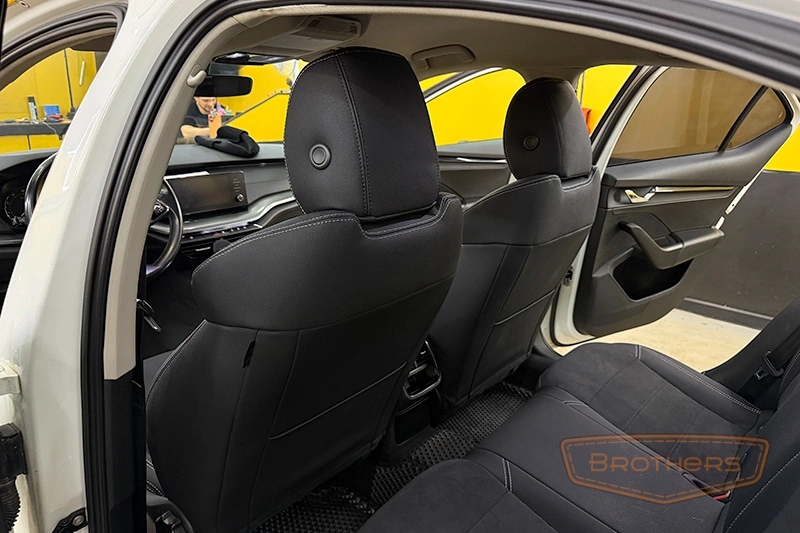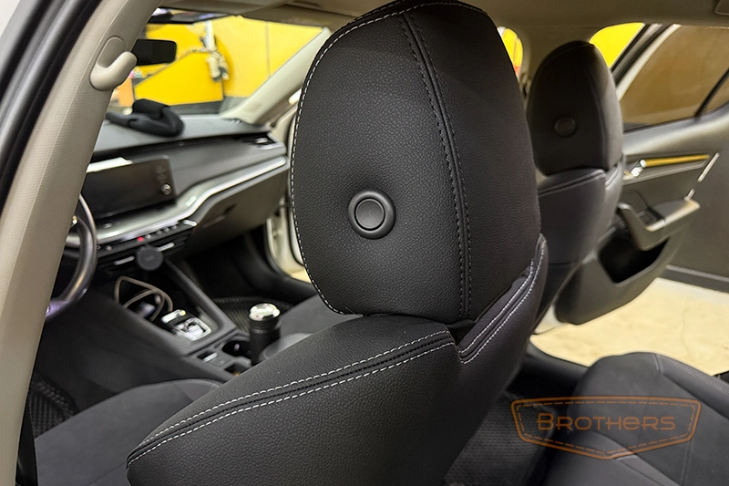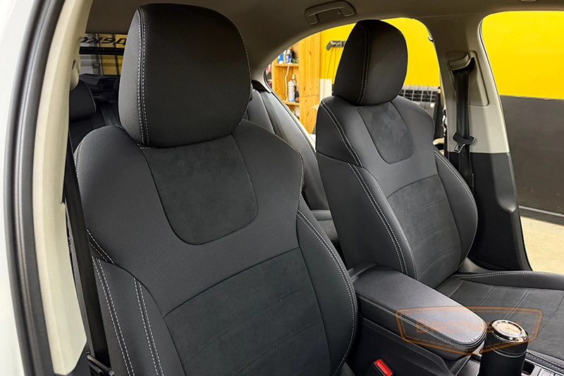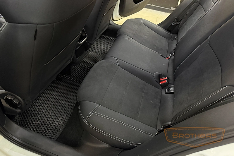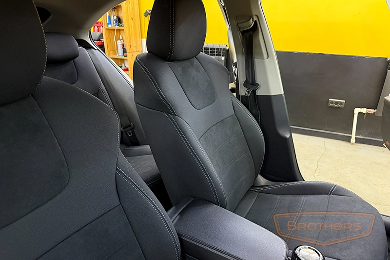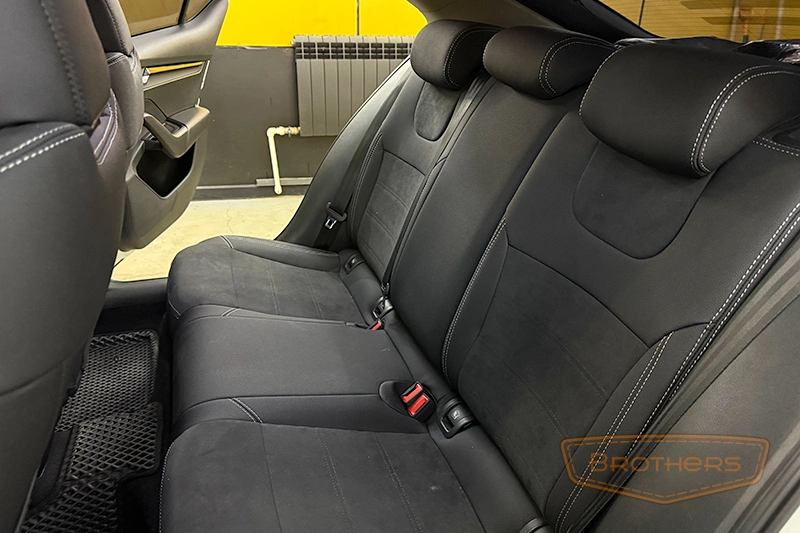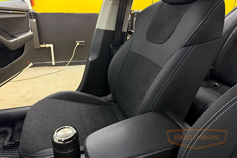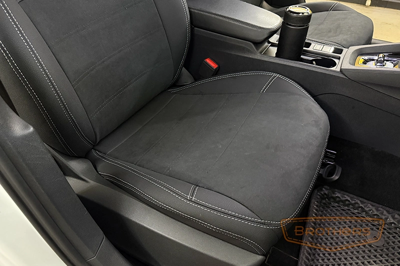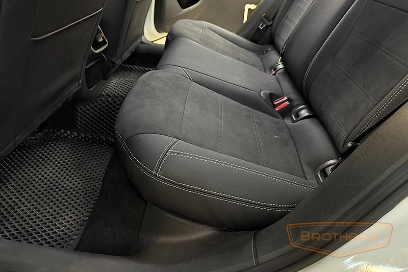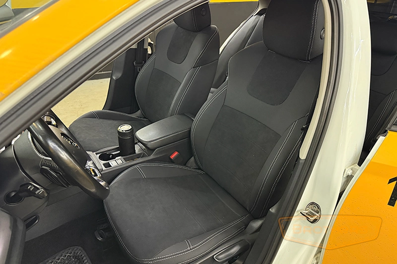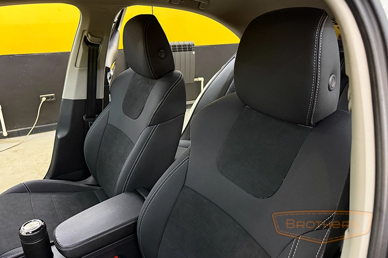 Не препятствуют срабатыванию AIRBAG, Высокая износоустойчивость, Фирменная двойная отстрочка в каждом комплекте чехлов, Четкая посадка на сидения.